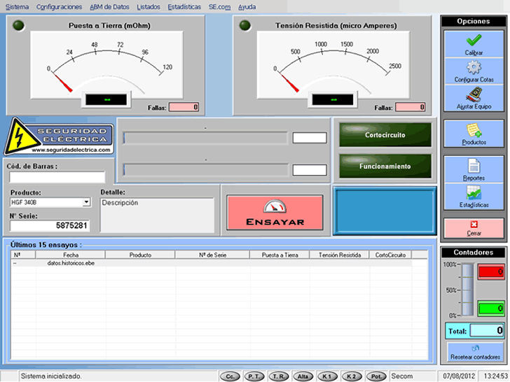 The equipment EBE 2 (Basic Test Equipment) is a system of acquisition, processing, control and management of data, to store all the results in a database and then generate production reports daily / monthly / annual statistical graphs, thus obtaining all the necessary information and trends for managing production control system.