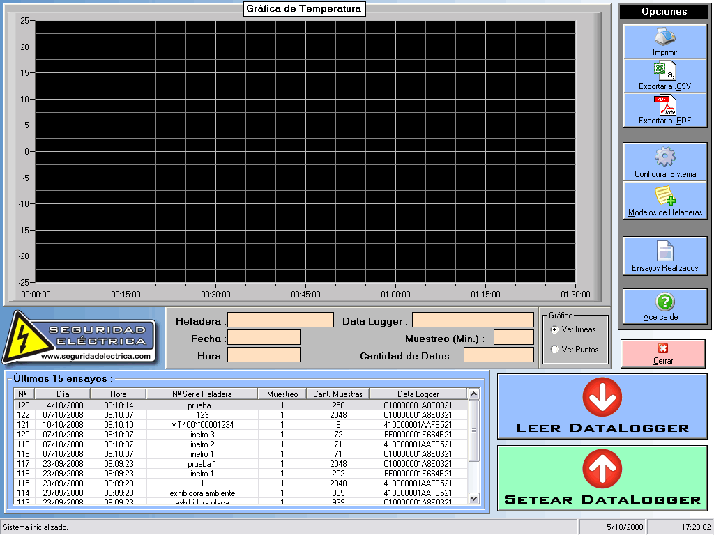 The software allows you to generate the impression of temperature charts and export data from a test to format .Pdf or .Csv.