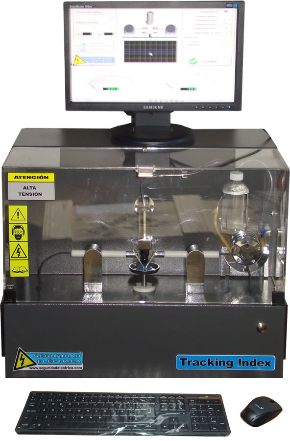 Este equipo se utiliza para el ensayo de encaminamiento eléctrico de materiales aislantes en condiciones húmedas (IEC 60112). Se encuentra diseñado y fabricado con el objeto de determinar el cumplimiento de distintas normas ( IEC 60335, IEC 60065, IEC 60745, IEC 61029, etc. ) en cuanto al requisito de acuerdo a los requisitos de las distintas certificadoras mundiales UL, DNV, IMQ, BVSQ, ITS, IRAM , CSA, VDE, DIN , INMETRO, etc.