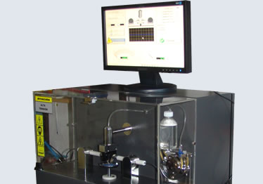 Nuestro equipo para el ensayo de Encaminamiento Electrico somete, a la muestra bajo ensayo una tensión de 0 a 600 Vca (1000 Vca a pedido) por medio de dos electrodos con una carga de 1 Newton. Entre los electrodos gotea una solución conductora a intervalos regulares programados.