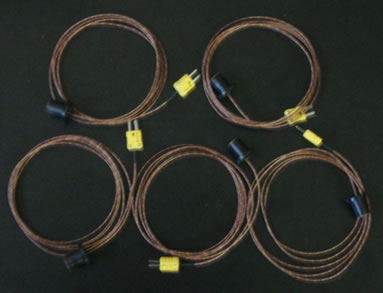 Las termocuplas de medición son de curva K, montadas sobre una vaina cerámica y en su extremo de medición poseen un disco de cobre de 15mm de diámetro y 1 mm de espesor. Constan de un cable compensado de longitud variable (de acuerdo a la necesidad) con un conector compensado macho, tipo mini para acceder directamente al instrumento de medición.