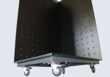 El equipo está conformado por un triedro de Fenólico de 21mm de espesor, pintado en Negro Mate , con una matriz de cavidades cada 100 mm que permiten adaptar fácilmente las termocuplas de medición, especialmente diseñada para tal caso.