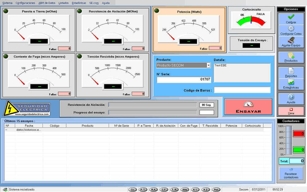 A tal efecto y no solo con el objeto de garantizar estos ensayos, sino también de garantizar los registro de los mismos y todo el proceso de control, Seguridad Eléctrica ha desarrollado varios equipos de ensayos para finales de línea: EBE 2, EBE 4 y EFE, en los cuales pueden ser configurables los ensayos a realizar, los tiempos de ensayos, las cotas de aceptación.