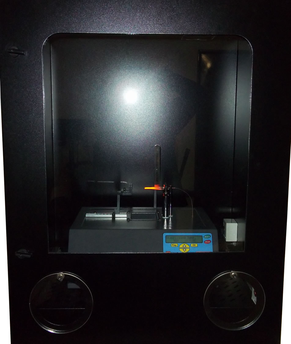 Dispositivo diseñado y fabricado para ensayos de flamabilidad.