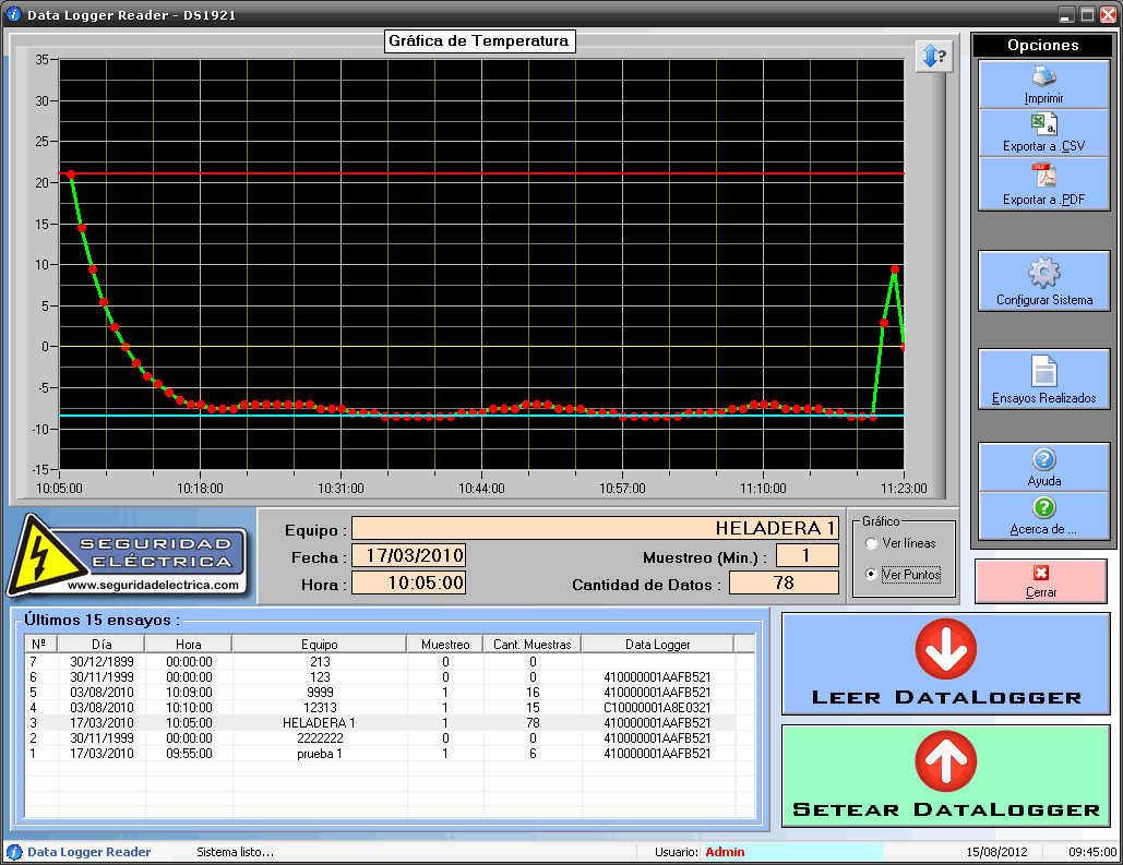 The software allows you to generate the impression of temperature charts and export data from a test to format .Pdf or .Csv.