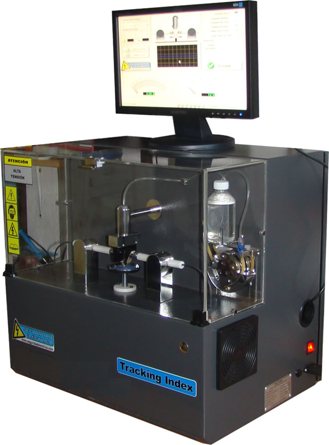 Equipo diseñado para obtener el IRE (Índice de resistencia al encaminamiento eléctrico) (Comparative tracking Index (CTI)), que es la tensión máxima (Vca), para la cual el material soporta el goteo de 50 gotas sin producir encaminamiento eléctrico entre electrodos.