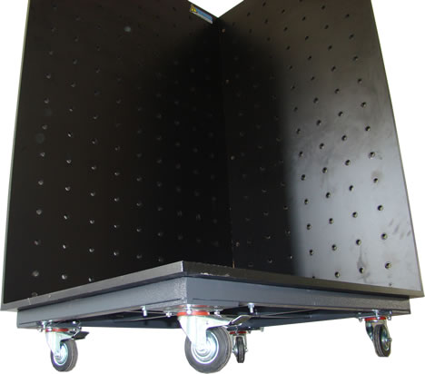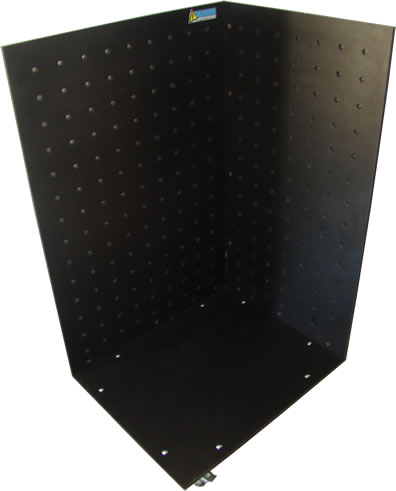El equipo está conformado por un triedro de Fenólico de 21mm de espesor, pintado en Negro Mate , con una matriz de cavidades cada 100 mm que permiten adaptar fácilmente las termocuplas de medición, especialmente diseñada para tal caso.