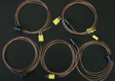Las termocuplas de medición son de curva K, montadas sobre una vaina cerámica y en su extremo de medición poseen un disco de cobre de 15mm de diámetro y 1 mm de espesor. Constan de un cable compensado de longitud variable (de acuerdo a la necesidad) con un conector compensado macho, tipo mini para acceder directamente al instrumento de medición.